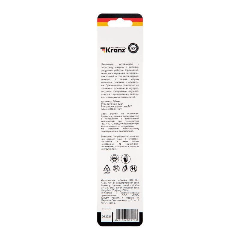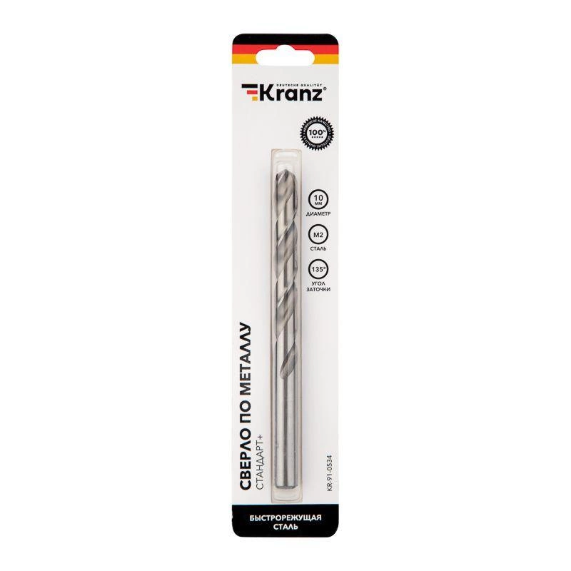 Сверло по металлу 10мм "Стандарт+" (P6M5 M-2) DIN 338 (блист.1шт) Kranz KR-91-0534