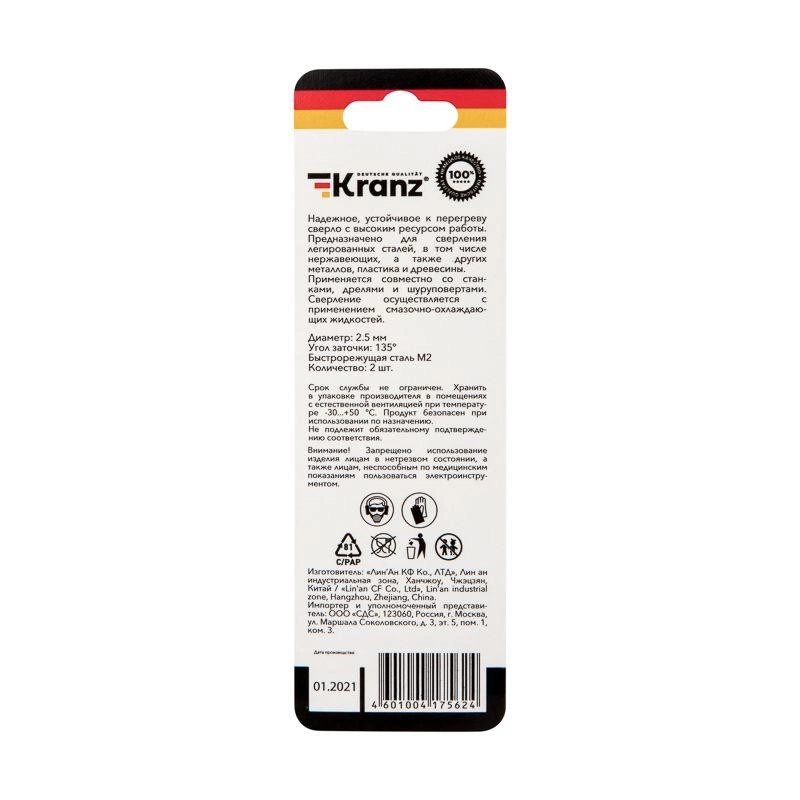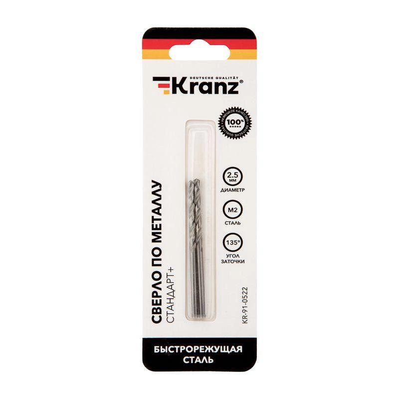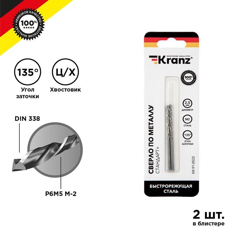 Сверло по металлу 2.5мм "Стандарт+" (P6M5 M-2) DIN 338 (блист.2шт) Kranz KR-91-0522
