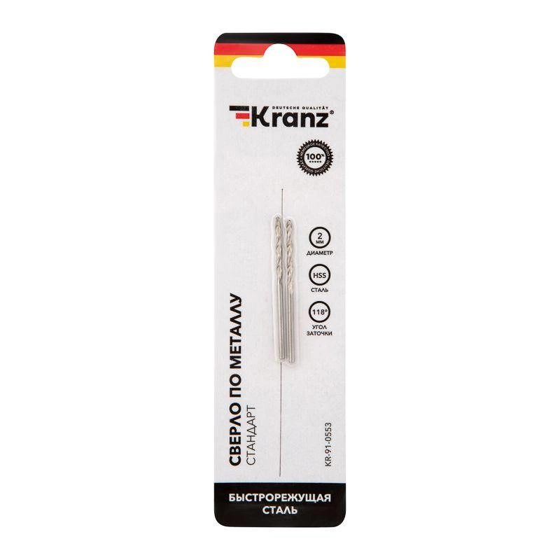 Полное описание: Сверло по металлу 2мм HSS DIN 338 (уп.2шт) Kranz KR-91-0553