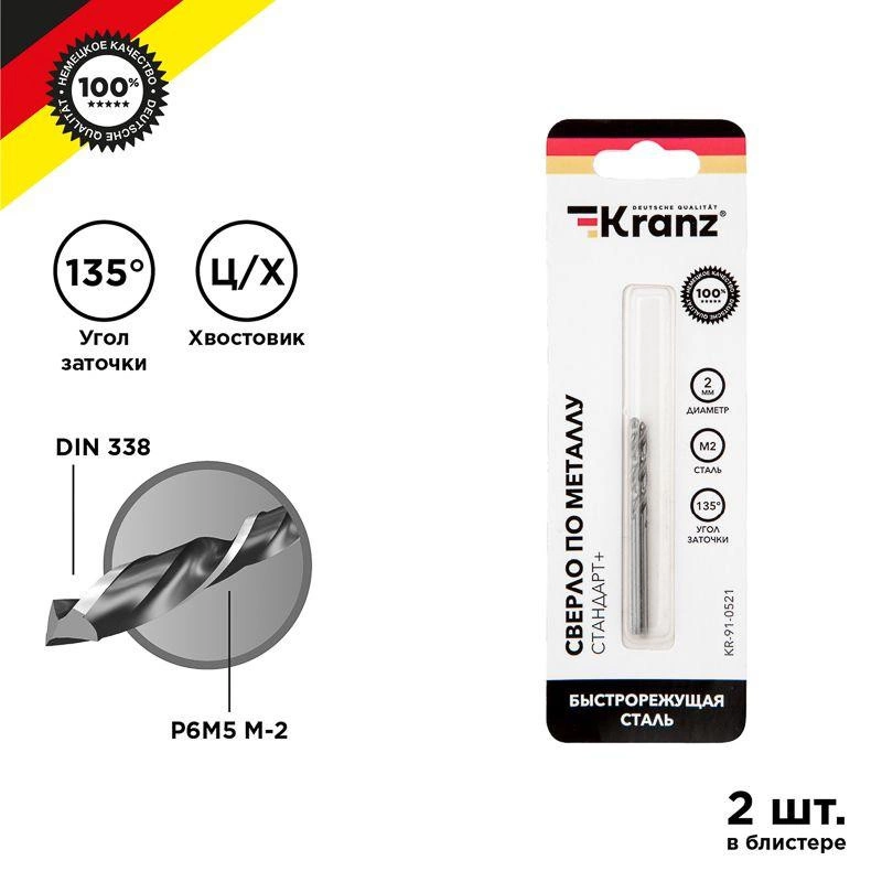 Полное описание: Сверло по металлу 2мм "Стандарт+" (P6M5 M-2) DIN 338 (блист.2шт) Kranz KR-91-0521