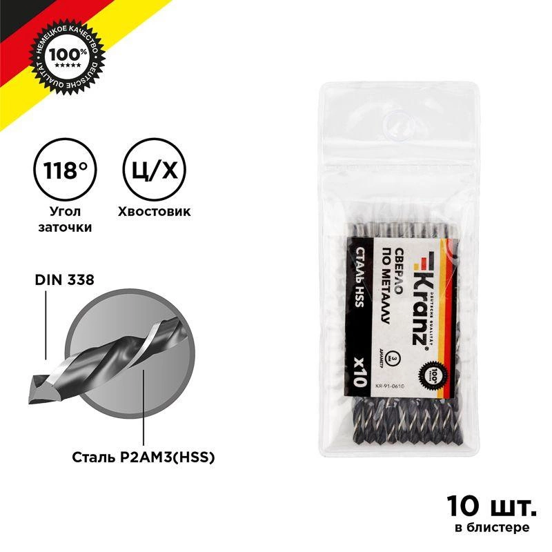 Сверло по металлу 3.0мм HSS DIN 338 (уп.10шт) Kranz KR-91-0610