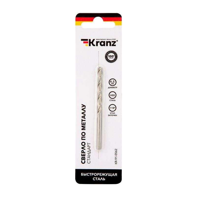 Сверло по металлу 4.5мм HSS DIN 338 (уп.1шт) Kranz KR-91-0562