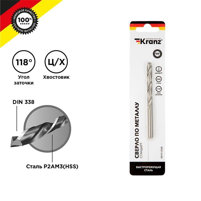 Полное описание: Сверло по металлу 7.0мм HSS DIN 338 (уп.1шт) Kranz KR-91-0568