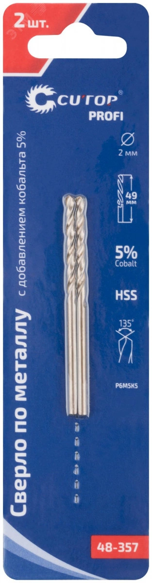 Сверло по металлу Cutop Profi с кобальтом 5% 2 x 49 мм, 2 шт