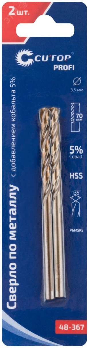 Сверло по металлу Cutop Profi с кобальтом 5% 3.5 x 70 мм, 2 шт