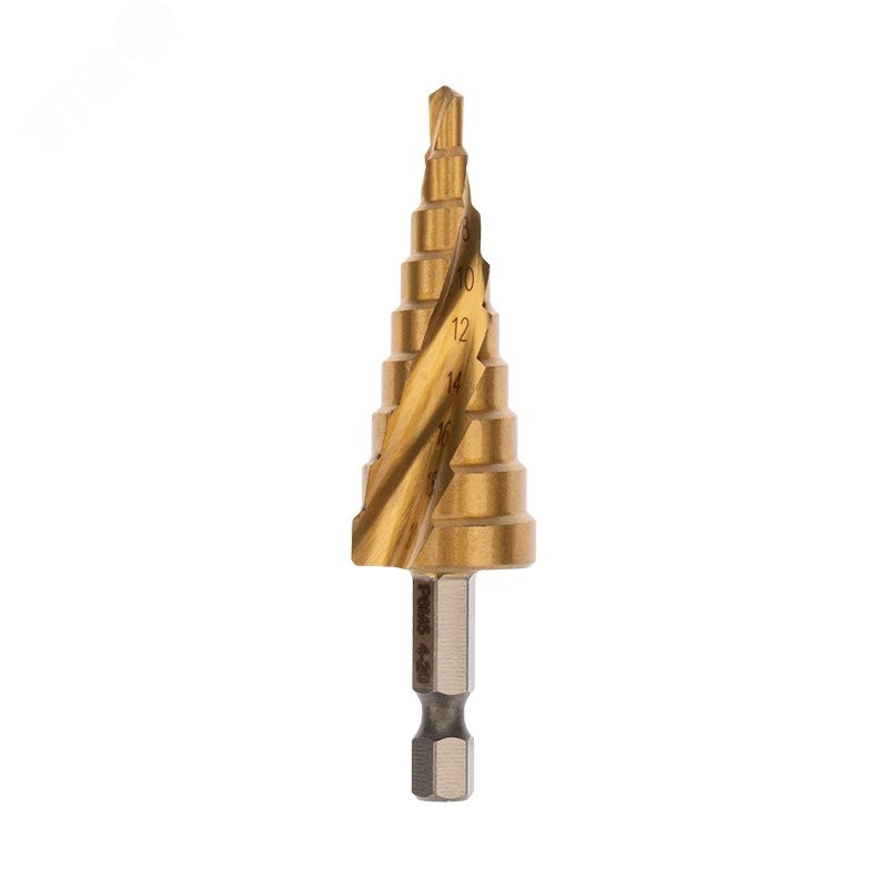 Ступенчатое сверло предназначено для сверления отверстий различных диаметров. Применяется в работе с такими материалами, как пластик, дерево, металл и др. Хвостовик сверла цилиндрический. На каждой ступени есть маркировка фактического диаметра. Сверло изготовлено из инструментальной легированной стали и покрыто нитридом титана. Обладает такими преимуществами, как - повышенная точность, повышенная прочность, универсальность применения, высокий рабочий ресурс.