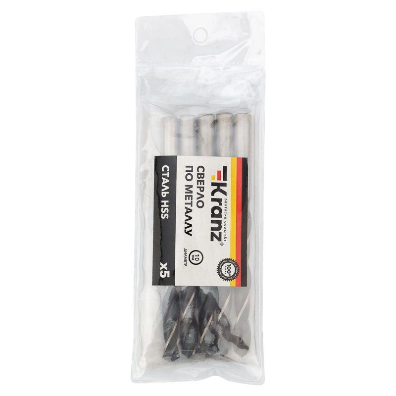 Сверло по металлу10.0мм HSS DIN 338 (уп.5шт) Kranz KR-91-0629