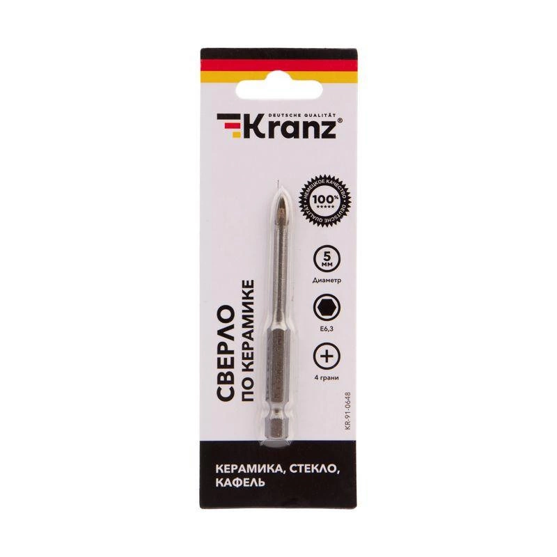 Сверло по стеклу и керамике 5мм 4 грани шестигранный хвостовик Kranz KR-91-0648