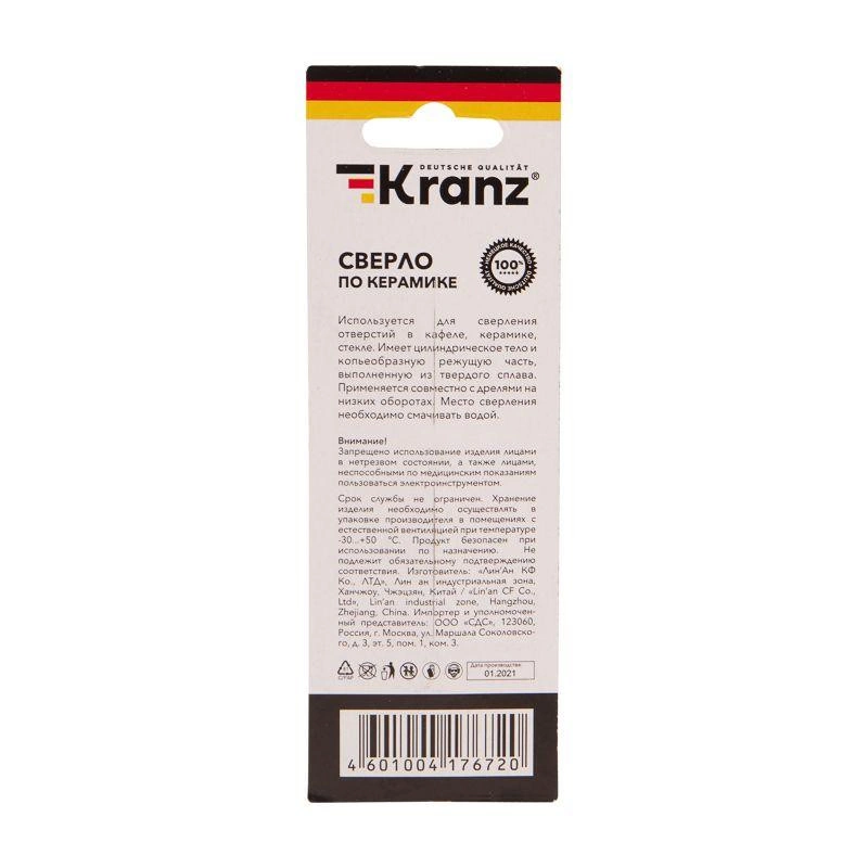 Полное описание: Сверло по стеклу и керамике 5мм 4 грани шестигранный хвостовик Kranz KR-91-0648