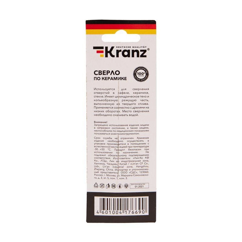 Полное описание: Сверло по стеклу и керамике 6мм (шестигранный хвостовик) Kranz KR-91-0642