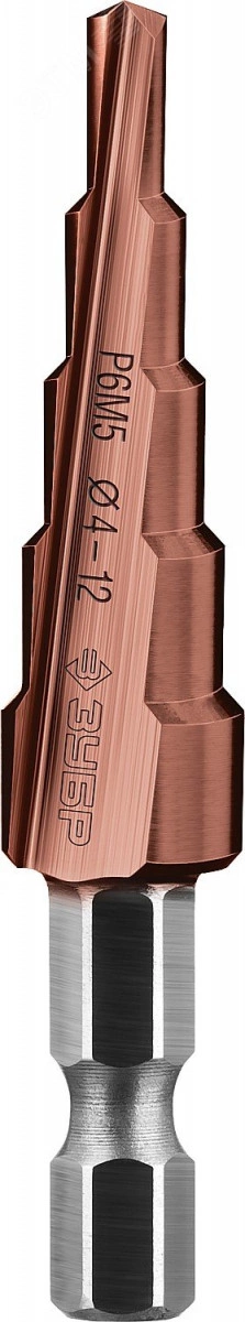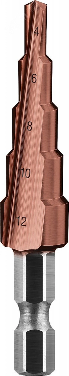 Сверло ступенчатое, 4-12мм, 5 ступеней, кобальтовое покрытие, КОБАЛЬТ, серия Профессионал