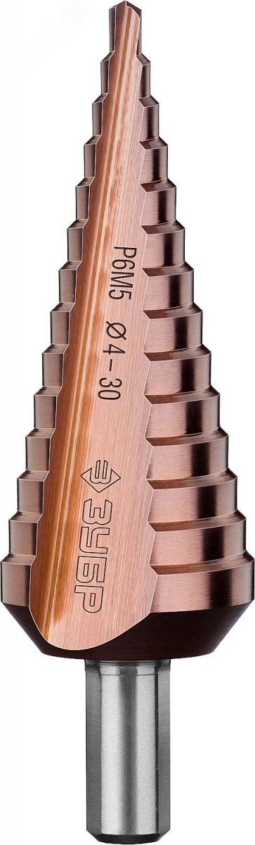 Сверло ступенчатое, 4-30мм, 14 ступеней, кобальтовое покрытие, КОБАЛЬТ, серия Профессионал