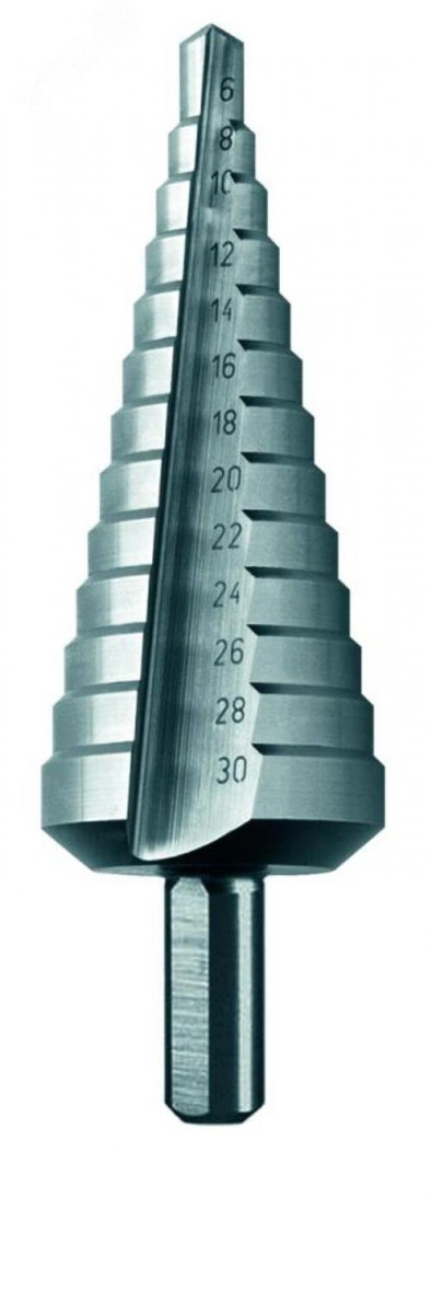 Сверло ступенчатое, HSS, Gr.3, d 6-30 мм, прямая канавка, трехплоскостной хвостовик, CBN шлифовка