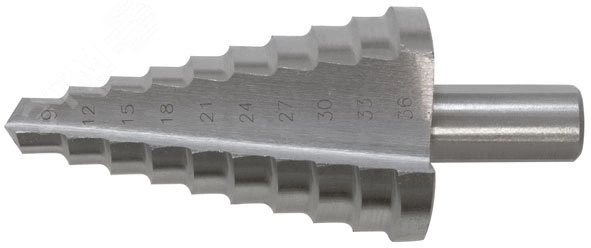 Сверло ступенчатое HSS по металлу, 9 ступеней, 9-36 мм