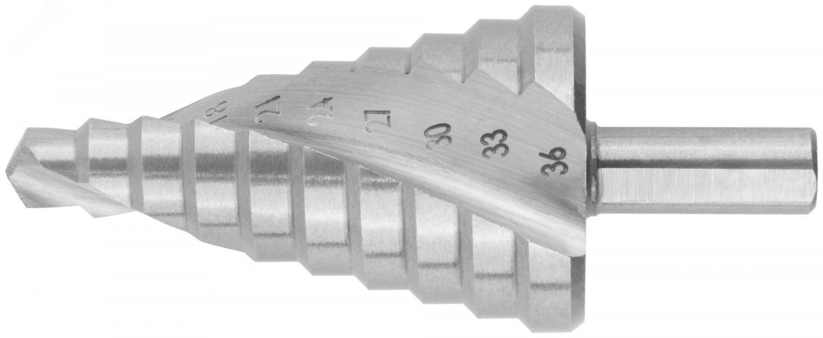 Сверло ступенчатое HSS по металлу, спиральный профиль, 10 ступеней, 9-36 мм