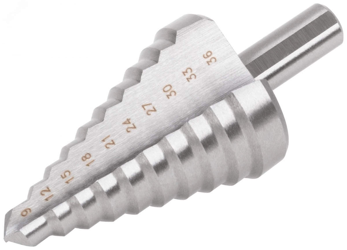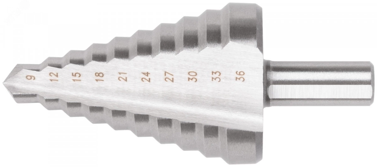Сверло ступенчатое HSS (Р6М5) по металлу, 9 ступеней, 9-36 мм
