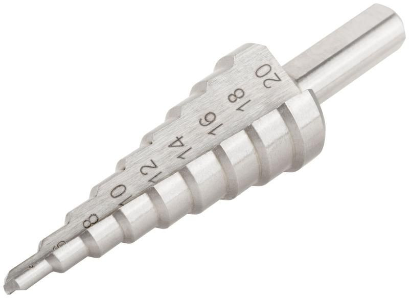 Полное описание: Сверло ступенчатое HSS (Р6М5) по металлу 9 ступеней 4-20мм FIT 36395