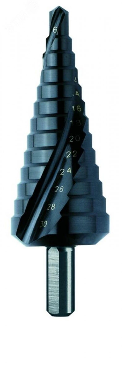 Сверло ступенчатое, HSS TiAlN, d 4-12 мм, спиральная канавка, трехплоскостной хвостовик, CBN шлифовка