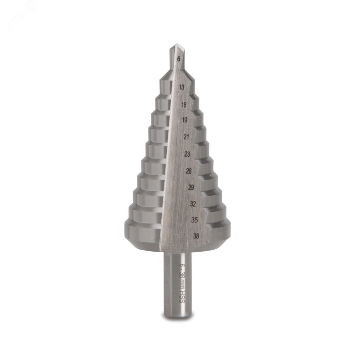 Сверло для сверления цилиндрических и точных отверстий диам. 13-16-19-21-23-26-29-32-35-38мм, в металлических листах, трубах, металлических или пластиковых рейках толщиной до 5 мм, противоскользящее соединение, диаметр хвостовика 10 мм, подходит для сквозных отверстий от PG 7 до PG 29.