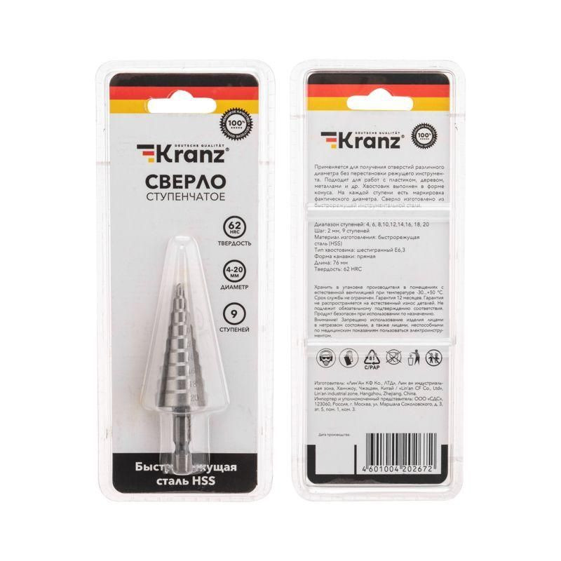 Сверло ступенчатое по металлу 4.0-20.0мм Kranz KR-12-6601