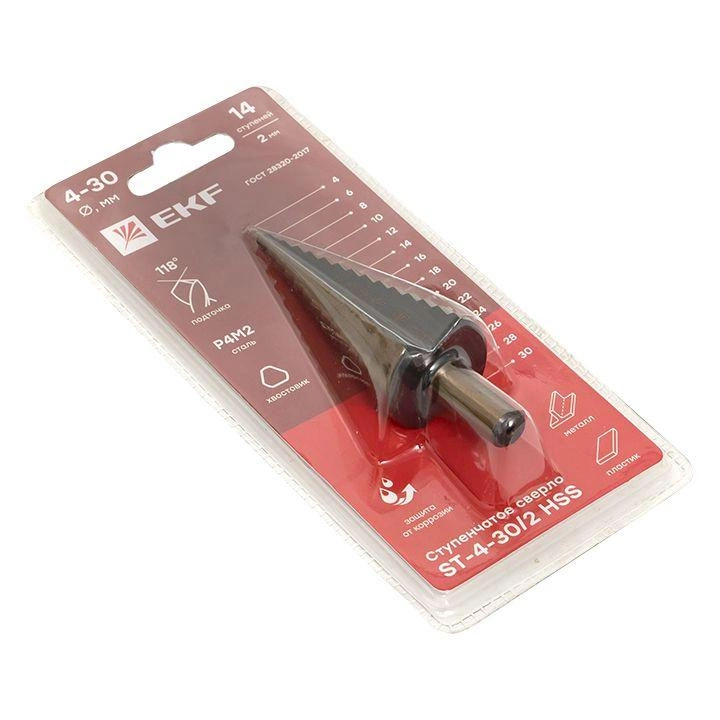 Полное описание: Сверло ступенчатое ST-4-30/2 HSS 14 ступ. EKF ST-4-30/2