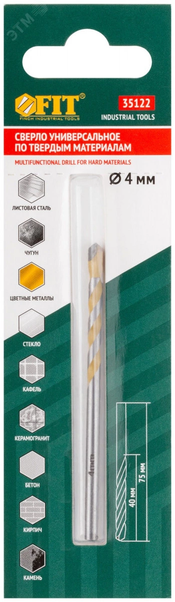 Для безударного сверления листовой стали, чугуна, цветных металлов, стекла, керамической плитки и керамогранита. Для ударного сверления бетона, кирпича, гранита, мрамора и камня. Сверление в стекле и керамической плитке должно быть аккуратным и непродолжительным. Подача воды необходима при сверлении стекла, мрамора, камня, чугуна, керамической плитки и керамогранита. Трехгранный хвостовик. Материал: корпус из легированной стали 40Cr, режущая вставка из карбида вольфрама ВК8С. Упаковка: блистер.
