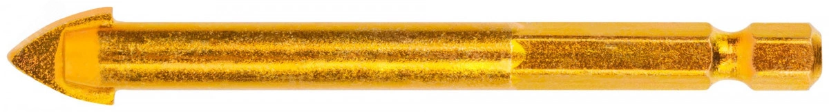 Для безударного сверления отверстий в керамической плитке, стекле, керамограните, бетоне и кирпиче. Сверление во всех указанных материалах должно быть аккуратным и непродолжительным и с применением водяного охлаждения. U-образный хвостовик под биту. Материал – корпус из легированной стали 40Cr с желтым цинковым покрытием, режущая вставка из карбида вольфрама ВК6. Упаковка – блистер.