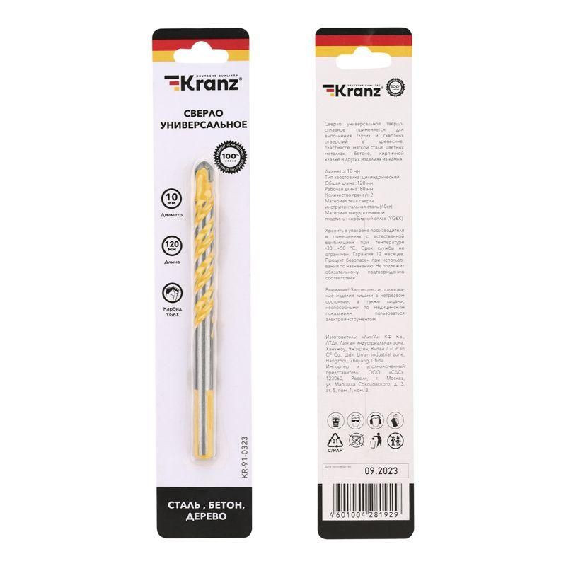 Сверло универсальное твердосплавное 10мм Kranz KR-91-0323