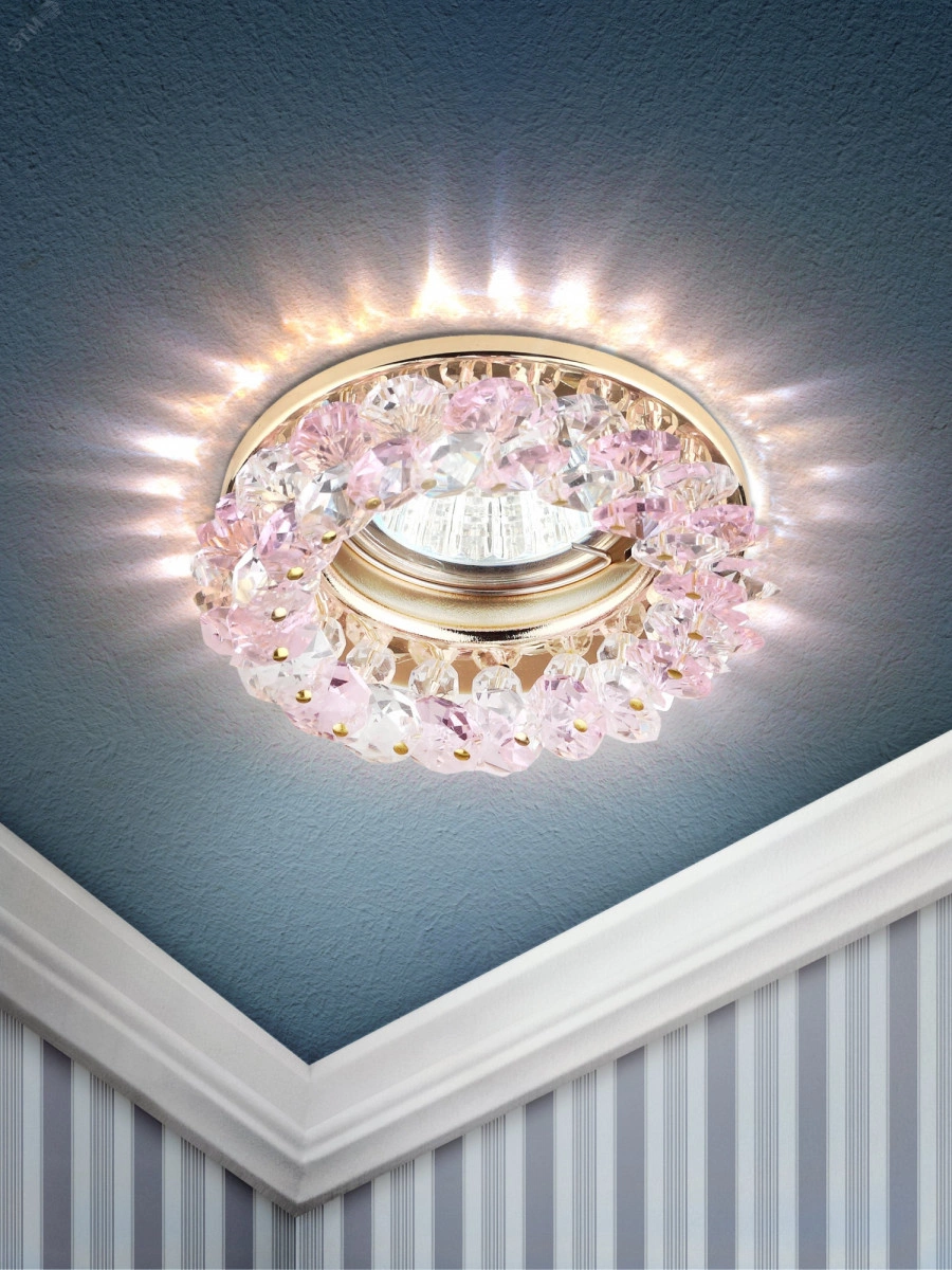 Полное описание: Светильник декор круглый с мелкими хрусталиками золото/прозрачный розовый DK16 GD/WH/PK ЭРА