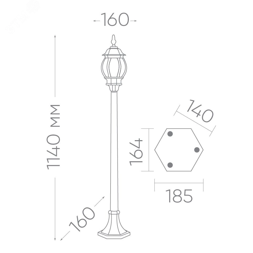 Светильник PL105 60W 230V E27 160*160*450 черное золото (на постамент 0,45м)