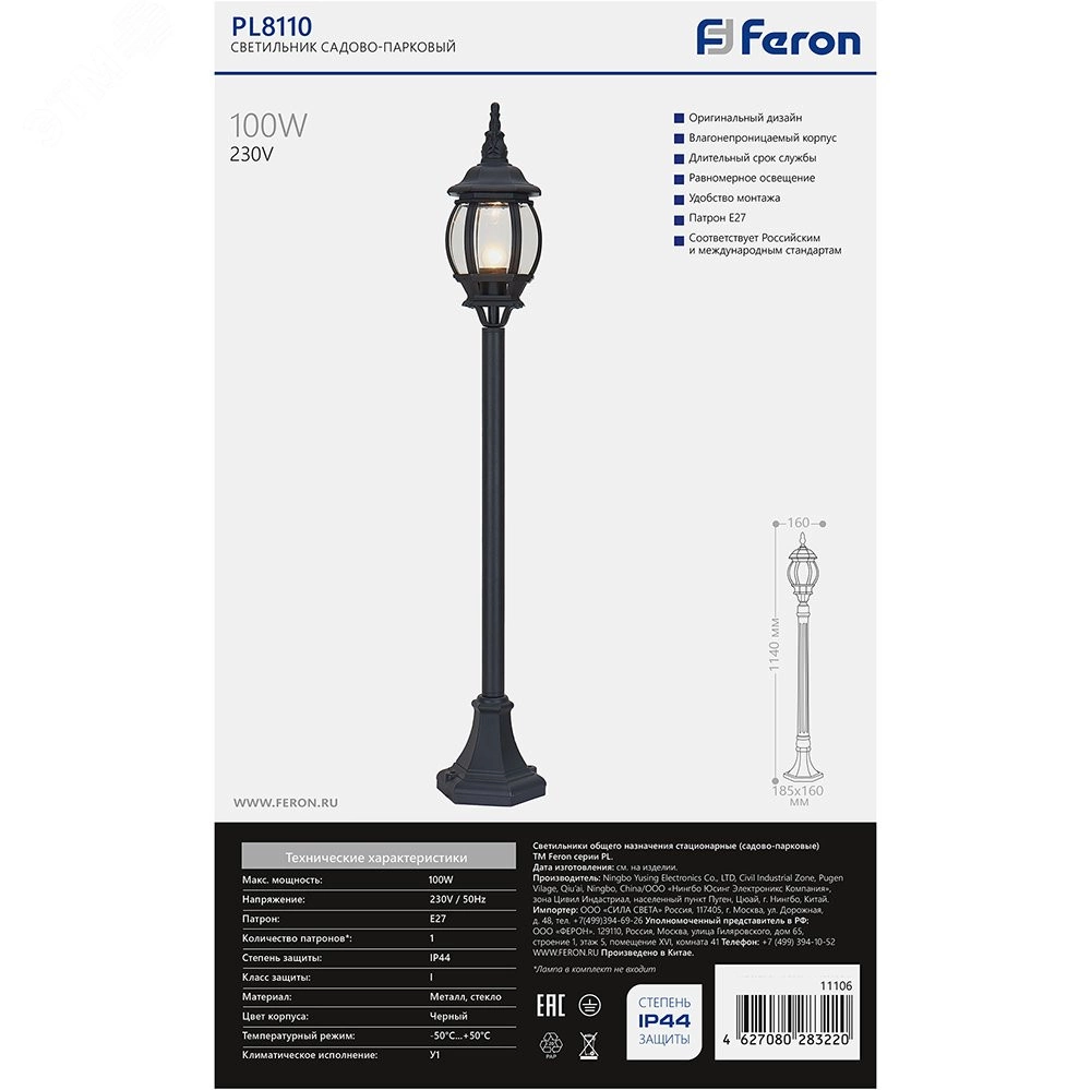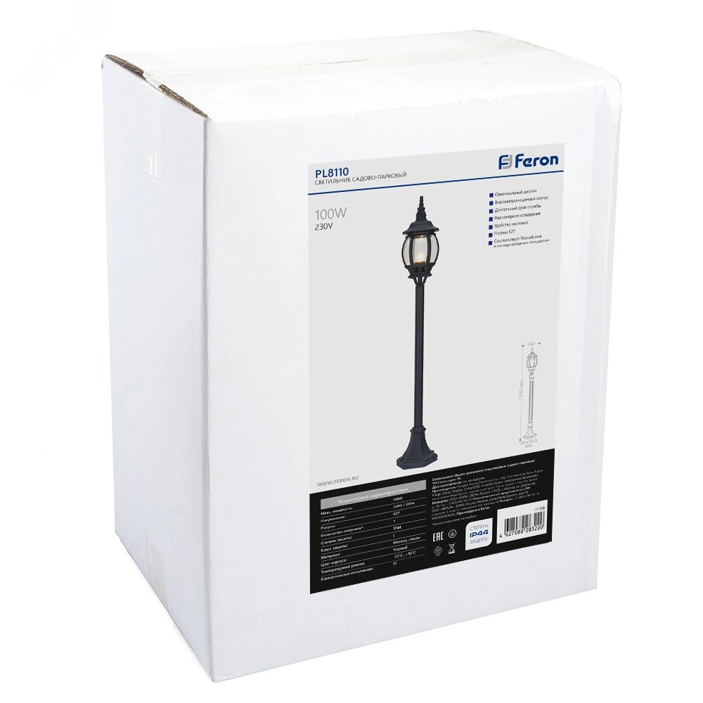 Полное описание: Светильник 8110 100W 230V E27 160х160х1200мм черный