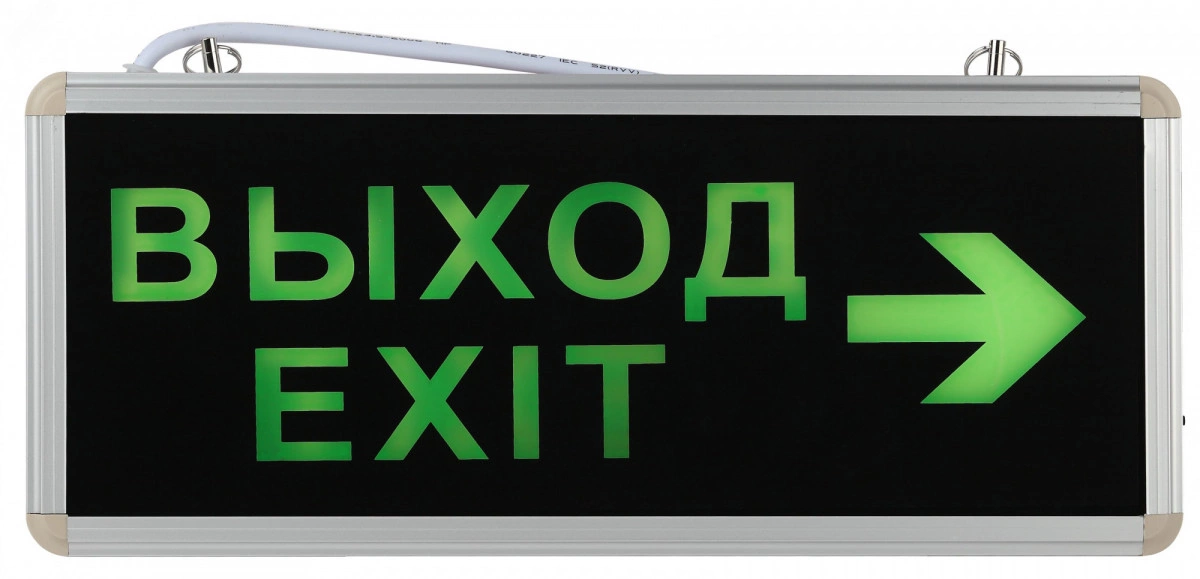 Светильник аварийный светодиодный. Область применения: Предназначен для указания мест выхода при эвакуации, направления движения, а также для различных информационных целей, ВЫХОД-EXIT, не менее 180 минут работы в аварийном режиме, наличие кнопки `ТЕСТ` для проверки работы в аварийном режиме. Гарантия: 2 года. Диапазон рабочих температур:(+1+35). Класс энергоэффективности: A. Климатическое исполнение: УХЛ4. Преимущества: ВЫХОД EXIT-стрелка, не менее 180 минут работы в аварийном режиме, наличие кнопки `ТЕСТ` для проверки работы в аварийном режиме. Цветовая температура:6500K. Материал корпуса: алюминий. Габариты: 363х152. Потребляемая мощность: 3Вт. Степень защиты от окружающей среды: IP20. Тип рассеивателя: матовый. Тип кривой: Д. Питающее напряжение светильника: 230Вт.