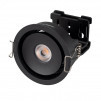 Встраиваемый поворотный светильник для потолка. Мощность 9W, цвет ТЕПЛЫЙ 3000K, св.поток 630лм, угол 45 градусов , RA>90. Корпус черный. Питание AC230V. Размеры DxH 78x90мм. Установка в отверстие 70мм. Драйвер в комплекте (30-45V, 220mA).