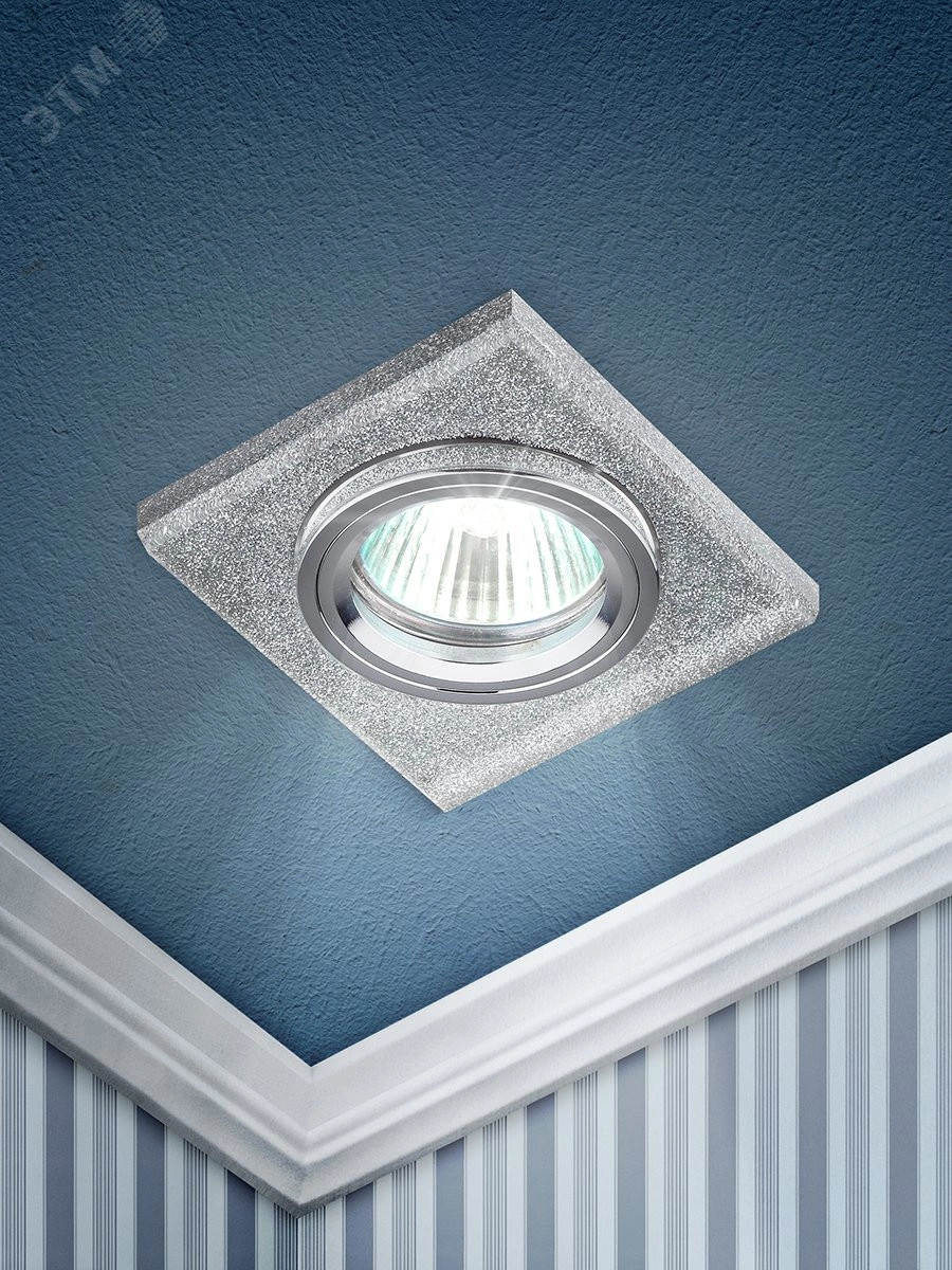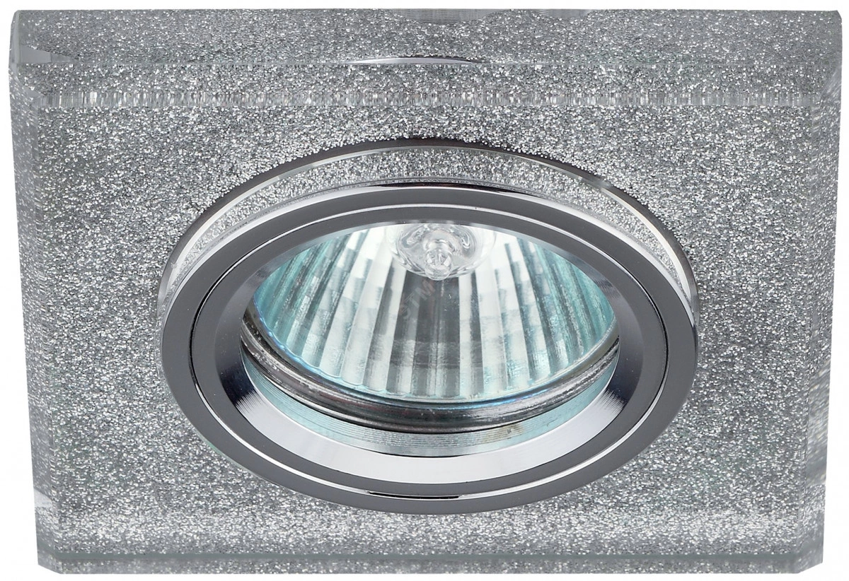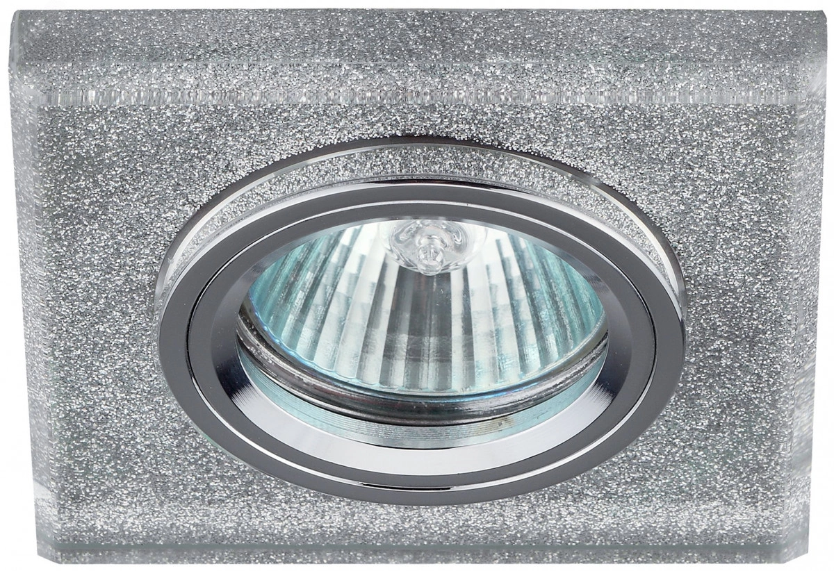 Светильник декор стекло квадрат MR16,12V/220V, 50W, хром/серебряный блеск DK8 CH/SHSL ЭРА