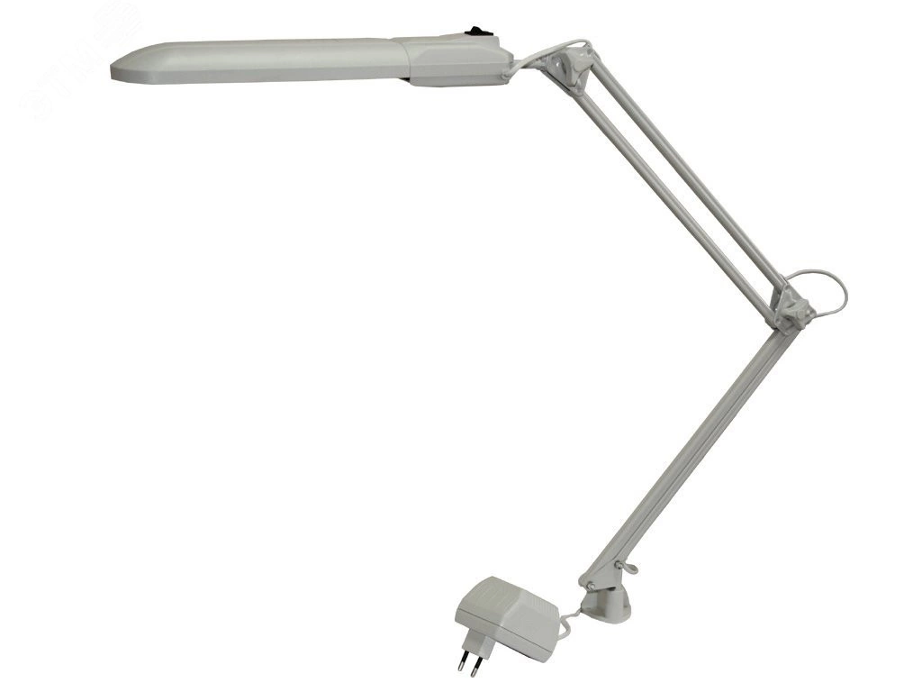 Светильник с патроном G23 для использования с КЛЛ. Светильник с дросселем (адаптер в электрическую розетку) . Вытянутая голова светильника имеет множество степеней свободы. Светильник на двухзвенном пантографе, что очень удобно для расположения плафона в определённом положении на разных высотах. Варианты использования: в учебных, медицинских, жилых и офисных помещениях.