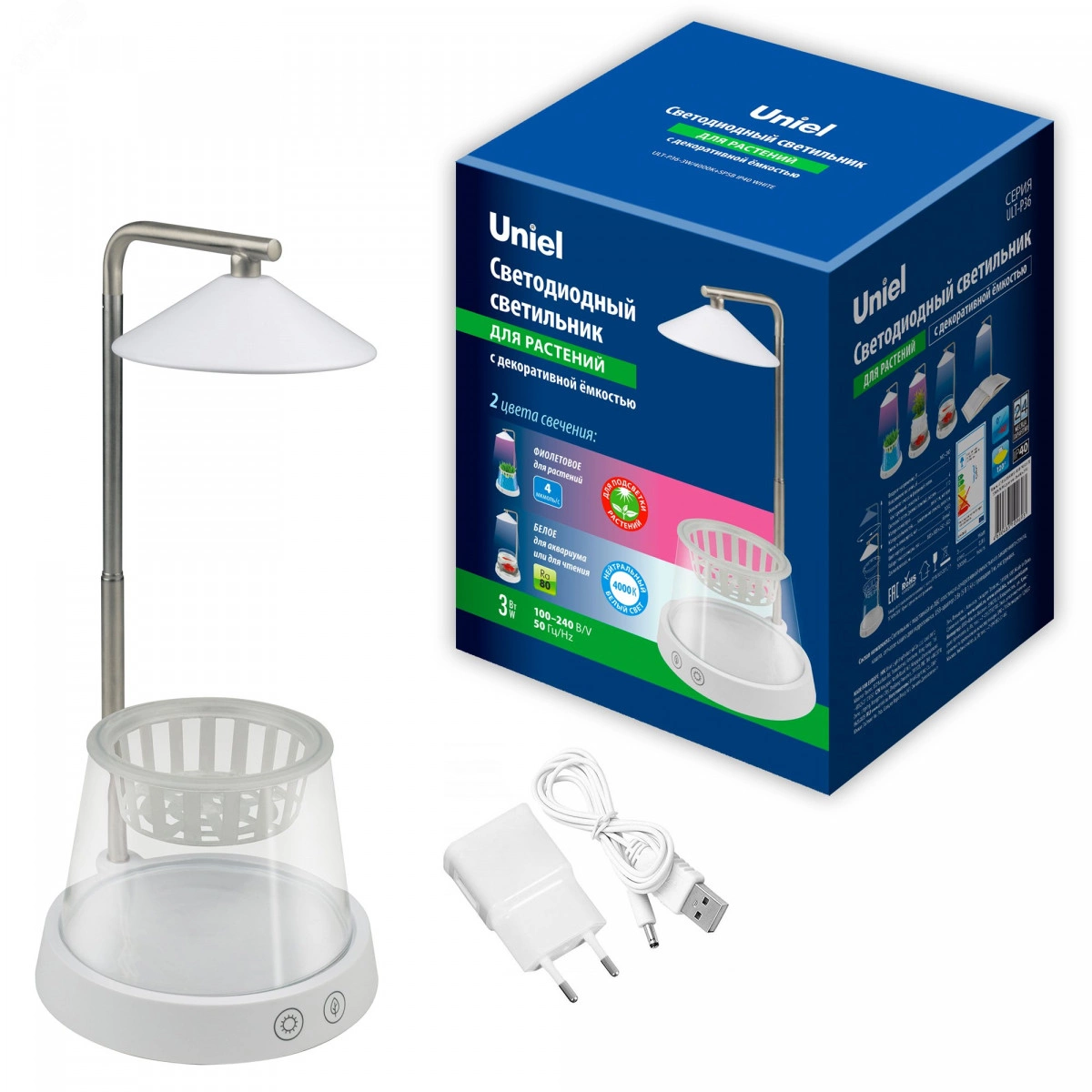 Полное описание: Светильник для растений светодиодный с подставкой и декоративной емкостью ULT-P36-3W/4000K+SPSB IP40 WHITE 4000K + cпектр для рассады и цветения
