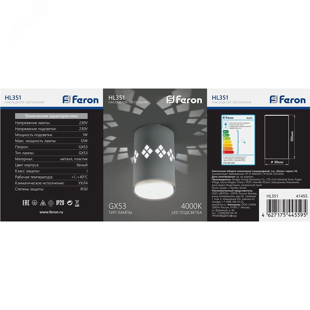 накладные светильники HL351, HL352 под популярную лампу GX53 с подсветкой. Это не просто удобный источник направленного света, но и эффектная часть интерьера помещения. Отверстия в металлическом плафоне и дополнительная подсветка создают интересные световые узоры на поверхности, на которой закреплен светильник. Все необходимое для монтажа включено в комплект поставки.