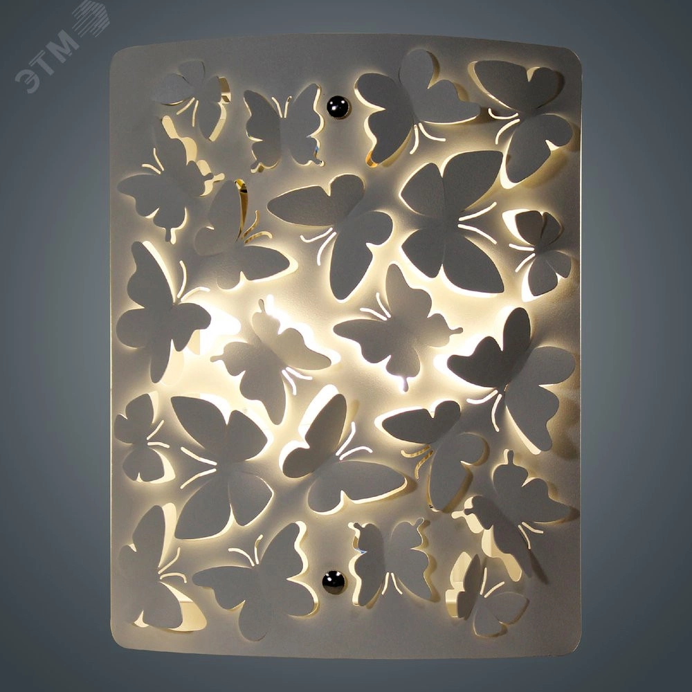Настенный светильник серии Эффект отлично подойдет для комнаты, оформленной в современном стиле. Резные элементы плафона в форме бабочек подчеркивают воздушность изделия, легко вписываются и в интерьер детской комнаты. Производитель рекомендует использовать лампу накаливания с цоколем E27 мощностью не более 60вт, а также светодиодные или энергосберегающие лампы. Для создания максимального декоративного эффекта можно использовать светодиодные лампочки RGB. Габаритный размер изделия 250*290*61 мм. Рекомендуемая площадь освещения до 5м?. Подключить питание 220 В можно непосредственно к контактам патрона в светильнике либо используя провод с вилкой и выключателем (входит в комплект). Лампочка в комплект не входит.