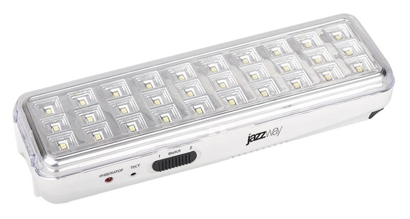 Светильник-фонарь светодиодный Accu9-L30-wh 30SMD яркий(300Лм)2ч/эконом(90Лм)6ч 220В/акк. Li-ion/3.7В/1200мАч аварийный бел. JazzWay 5024533