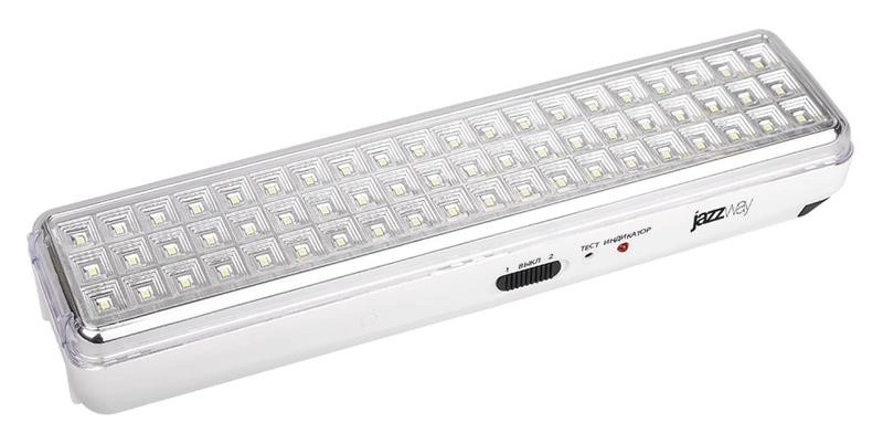 Светильник-фонарь светодиодный Accu9-L60-wh 60SMD яркий(300Лм)2ч/эконом(90Лм)6ч 220В/акк. Li-ion/3.7В/2400мАч аварийный бел. JazzWay 5024540