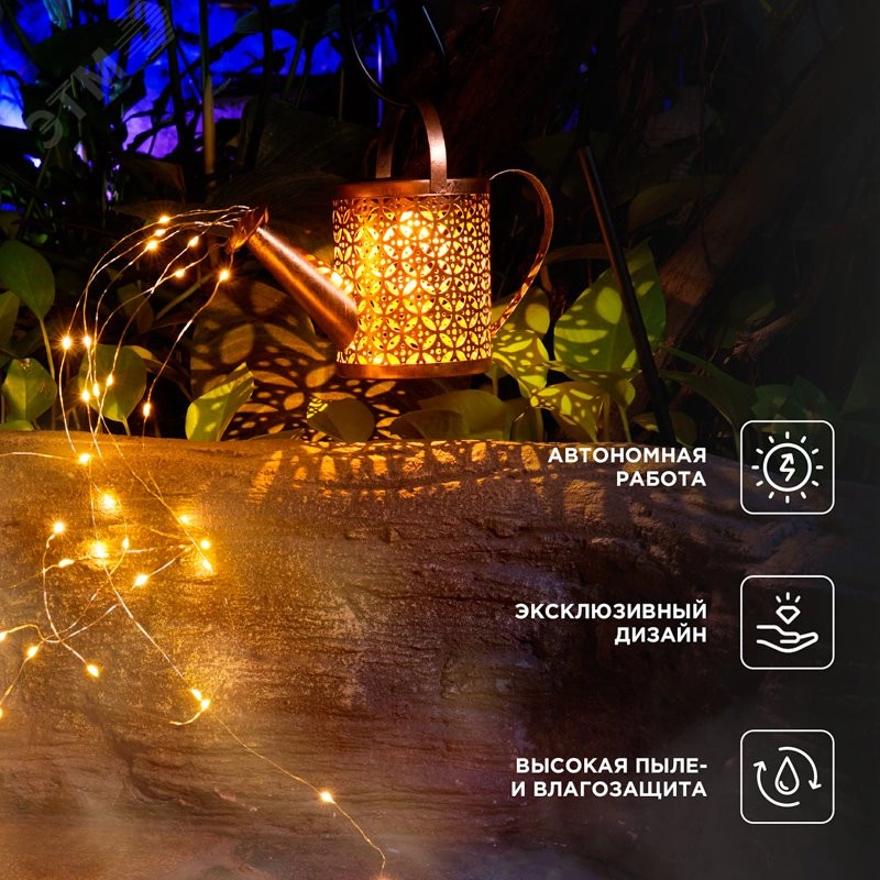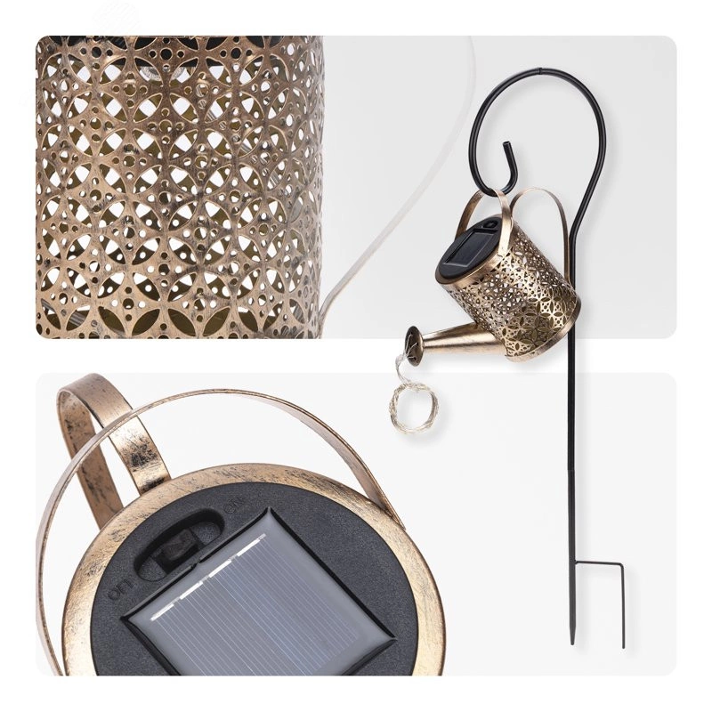 Грунтовый светильник Лейка – это не только источник освещения, но и декоративный элемент, который превращает ваш сад в волшебное пространство, наполняя его нежной атмосферой и загадочным сиянием. Светильник выполнен в форме Лейки, из носика которой струится гирлянда роса, создавая эффект светящихся падающих капель. Светильник оснащен солнечной панелью, которая поглощает солнечные лучи в течение дня и преобразует их в электрическую энергию. Накопленная энергия хранится во встроенном аккумуляторе, что позволяет светильнику автономно функционировать около 6-8 часов и освещать окружающую территорию вечером и ночью, не требуя подключения к электросети. Дизайн светильника вдохновлен богатой историей и культурой Стамбула, что привнесет в ваш сад нотки восточной элегантности и утонченности.