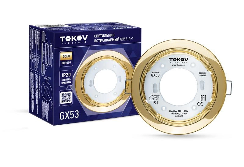 Полное описание: Светильник GX 53-G-1 106х48мм зол. металл+пластик TOKOV ELECTRIC TOK-GX53-G-1