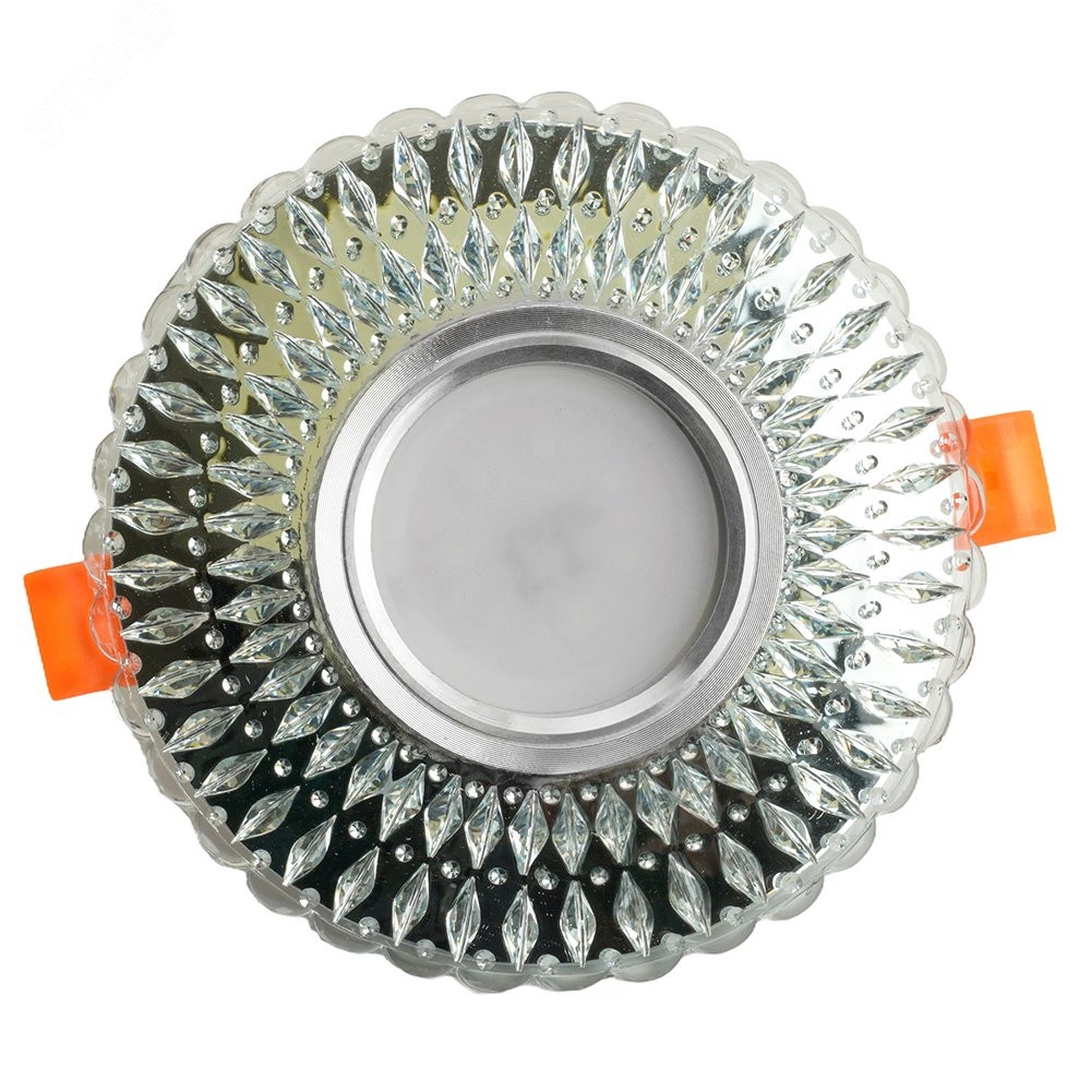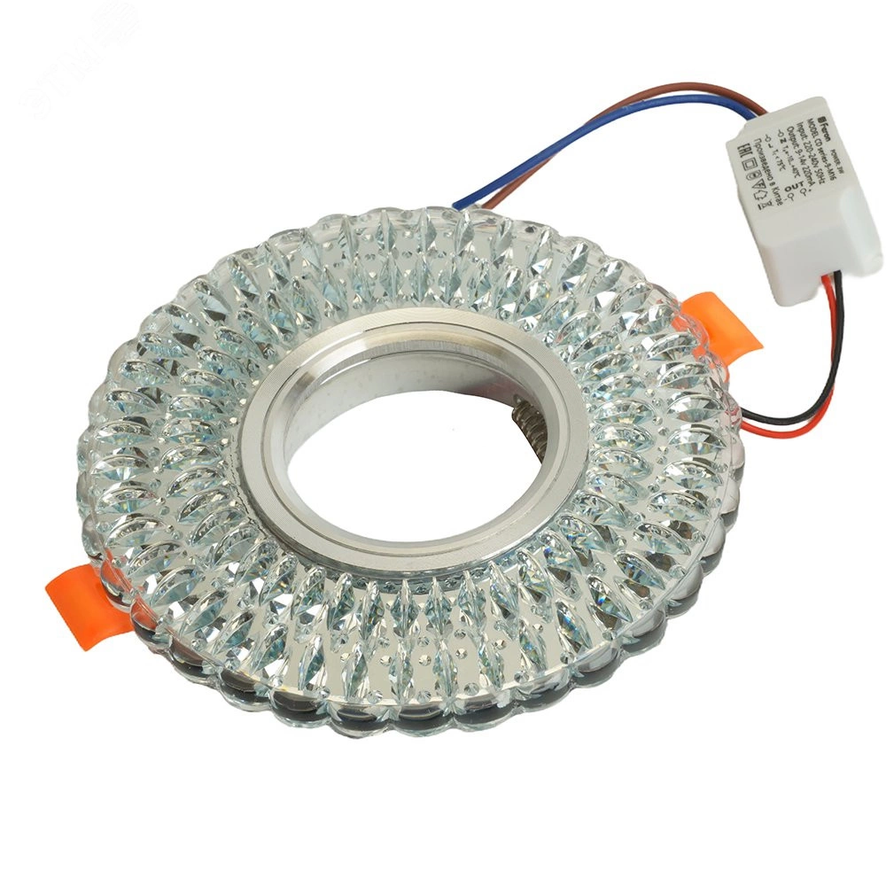 Светодиодный светильник разработан специально для натяжных потолков и подвесных систем. Применяется как для декоративной подсветки, так и для основного освещения помещений. Особенностью новых моделей светильников является подсветка кристаллов при помощи светодиодной ленты расположенной по периметру светильника, что обеспечивает возможность отдельного включения светодиодной подсветки или лампы (при подключении к разным выключателям).