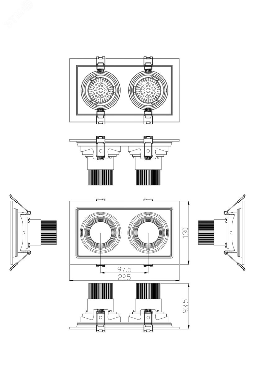 Светильник карданный встраиваемый SKD-12-36-40K-W09 2х9Вт 4000K 1620Лм 225х130х100