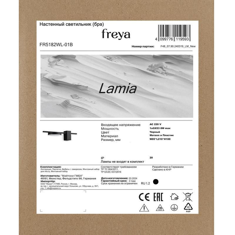 В нашем интернет-магазине вы можете купить Светильник Lamia 8Вт GX53х1 IP20 бра настен. Freya FR5182WL-01B в Екатеринбурге, артикул FR5182WL-01B. Чтобы уточнить условия оплаты, доставки и действующие скидки на товар, свяжитесь с нашим менеджером по телефону +7 (343) 266-30-88.