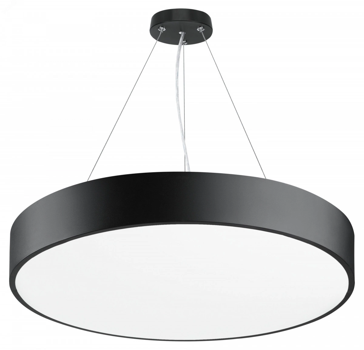 Подвесные светильники 'Geometria' различных форм и размеров позволят реализовать дизайнерские идеи освещения пространства. Для каждой модели доступно 2 варианта цвета: белый и черный. Предусмотрена возможность регулировки высоты установки до 1м при помощи троса. В комплект поставки входит круглое крепление к потолку. Подвесная система максимально эстетична, питание идет по тросу. Корпус изготовлен из стали, покрытой порошковой окраской. Драйвер находится внутри светильника, входит в комплект.