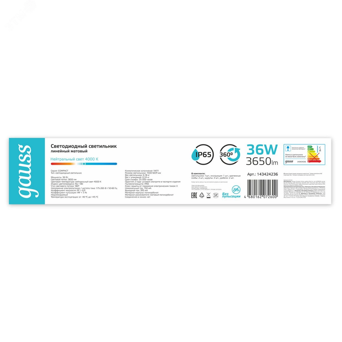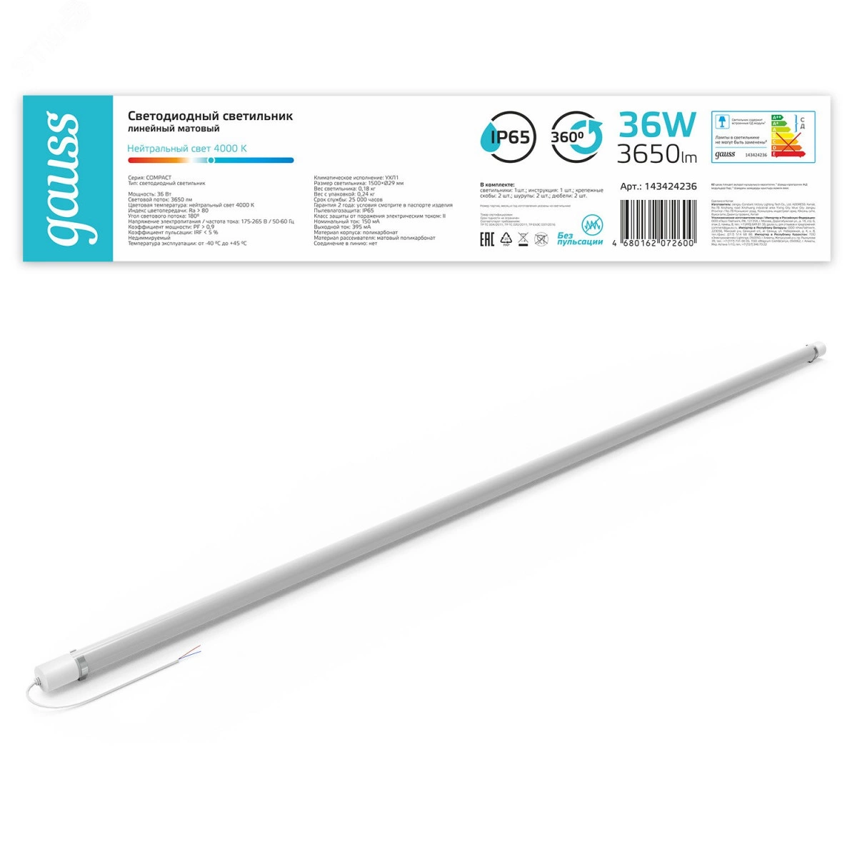 Светильник линейный ДСП 36 Вт 4000К 3650 лм 175-265В IP65 1500х29х29мм Пластик матовый COMPACT Gauss