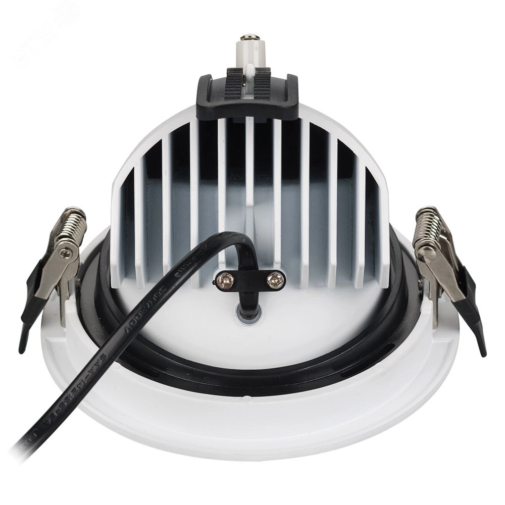 Встраиваемый поворотно-выдвижной светильник. Мощность 20 Вт, св. поток 1600-1800 лм, 80-90 лм/Вт, дневной 4000 K, CRI-90, угол 38 градусов , напряжение питания 230 В. Белый круглый корпус из алюминия, экран стекло, степень защиты IP20. Угол поворота 350 градусов , угол наклона 45 градусов . Размер - диаметр 129 мм, высота 115 мм. Монтаж встраиваемый, установочное отверстие - диаметр 120 мм. Драйвер 27-42 В, 500 мА, пульсация <3%.