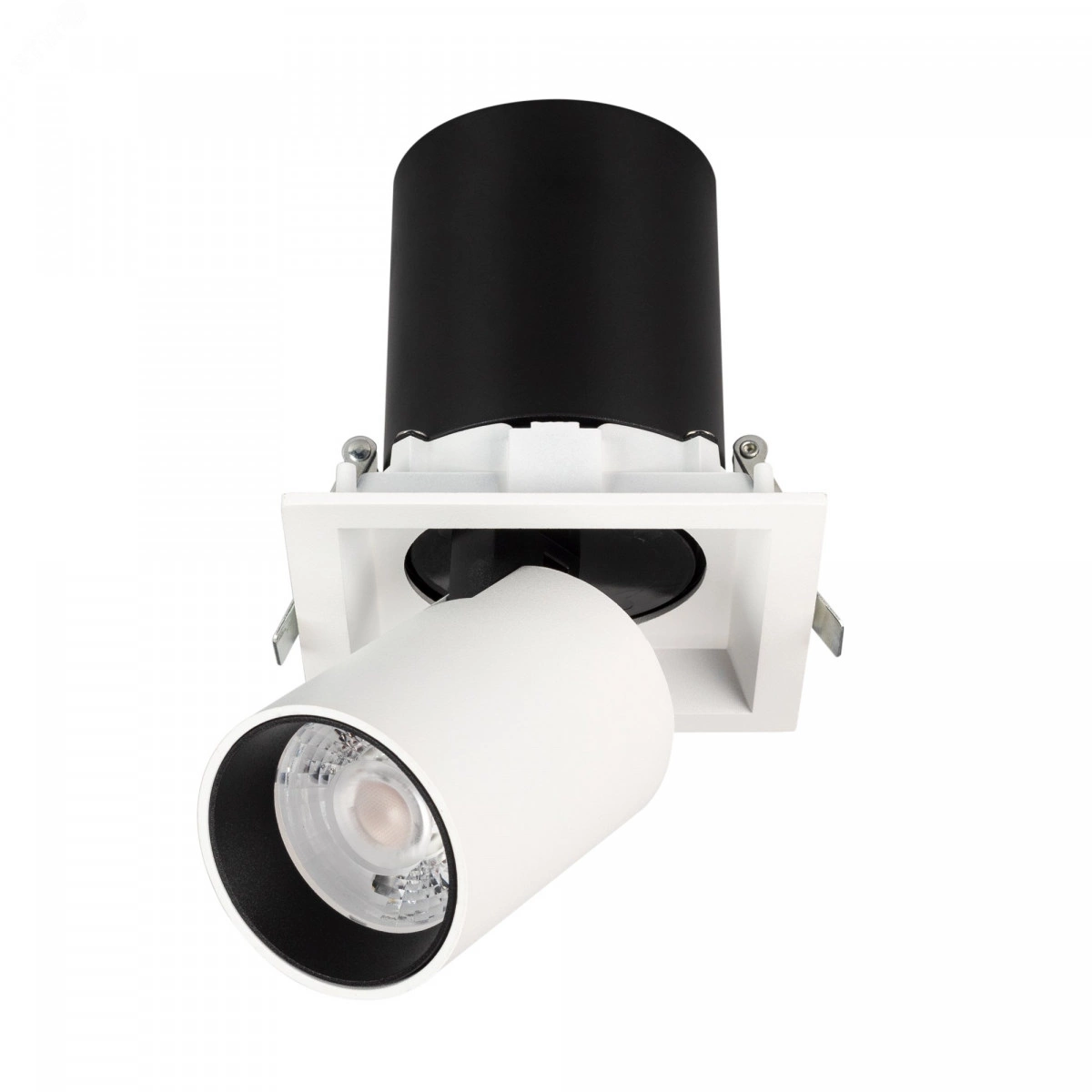 Встраиваемый поворотный выдвигающийся светильник для потолка. Мощность 10 Вт, св. поток 900 лм, 90 лм/Вт, дневной 4000 K, CRI-90, угол 24 градусов , напряжение питания 230 В. Белый квадратный корпус из алюминия, экран PC, степень защиты IP20. Размер (ДШВ) 112112127 мм. Монтаж встраиваемый, установочное отверстие 100 мм. Драйвер 30-48 В, 250 мА, пульсация <1%.