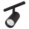 Светильник для магнитных треков MAG-ORIENT шириной 26 мм с уп. Мощность 20 Вт, св. поток 2010 лм, 100 лм/Вт, дневной 4000 K, CRI-90, угол 24 градусов , напряжение питания 48 В. Черный фигурный корпус из металл, экран поликарбонат, степень защиты IP20. Размеры LxWxH 116x66x198 мм. Длина светоизлучающего модуля 140мм. Монтаж на трек MAG-ORIENT. Пульсация <1%.